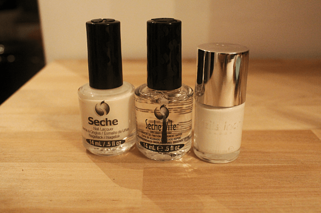| From left to right: Seche Blanc II, Seche Vite and Nails Inc Floral Street |