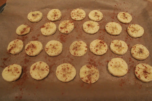 Slice a banana or two into even thin slices and sprinkle with some cinnamon.