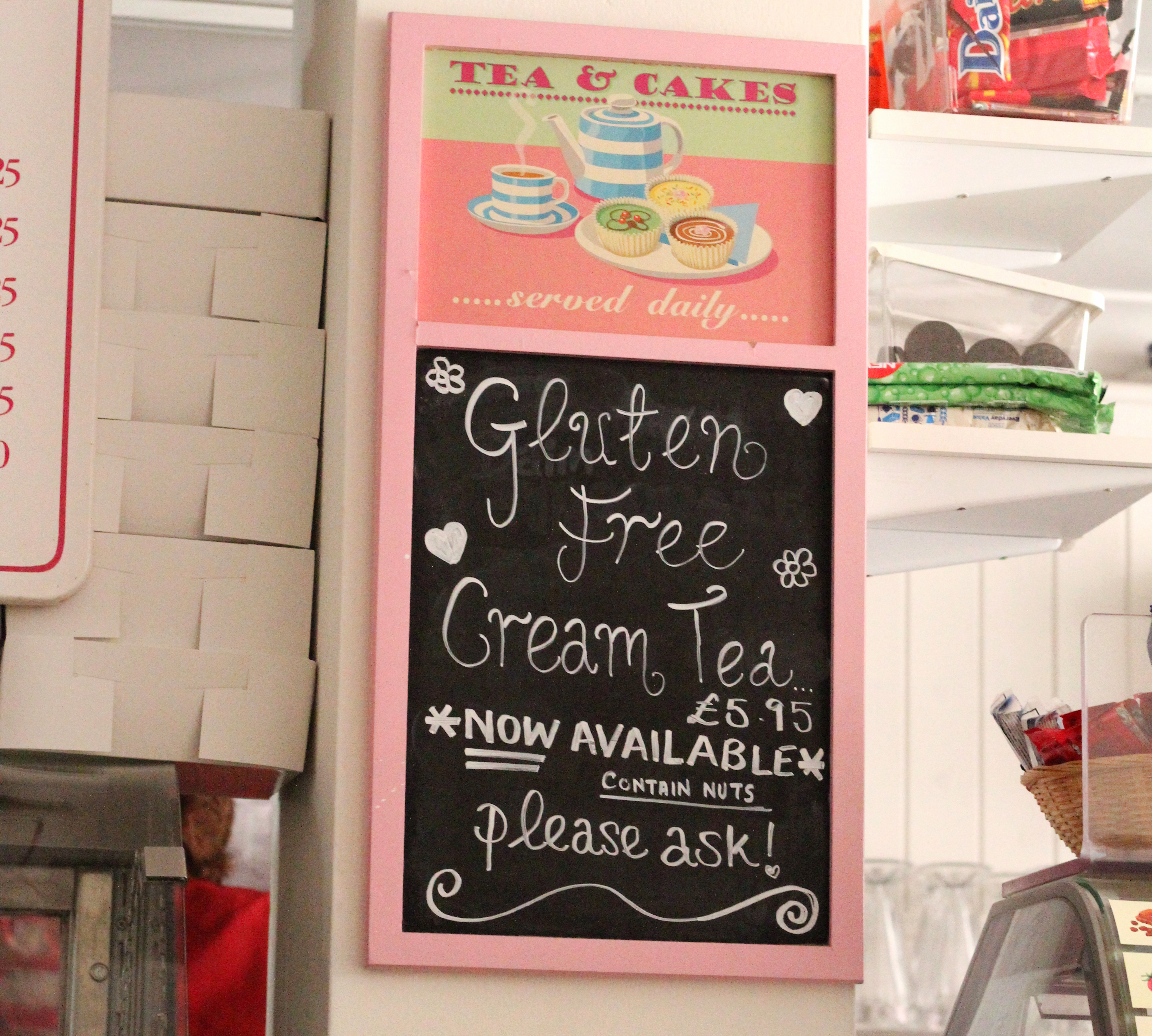 teacupThe tea room is decorated with retro looking posters and signs.If you like the decor then you are in luck, you can buy cake stands, mugs, posters and gifts to take away.