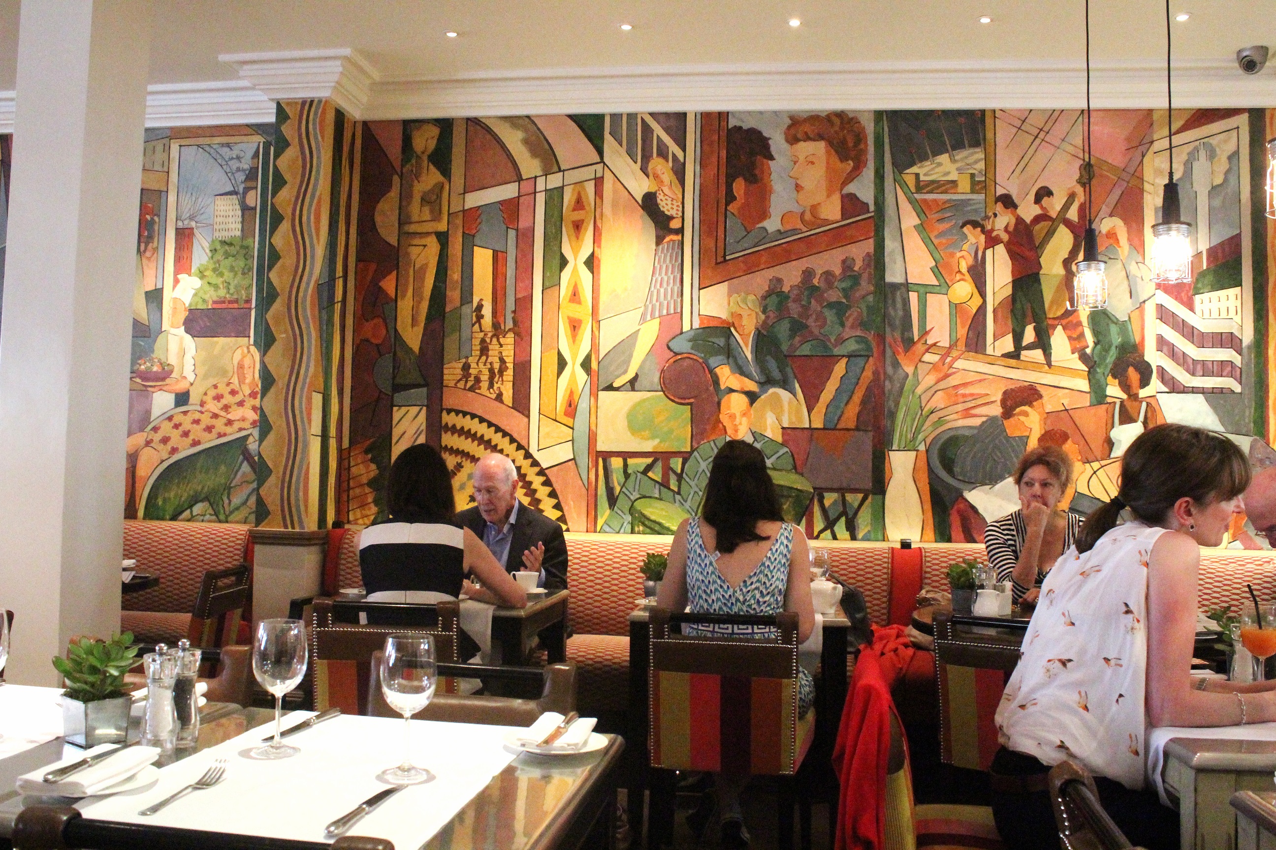 The Oscar Bar and Restaurant decor has been created by designer Kit Kemp with colourful, abstract art showcasing ‘contemporary London life’ which adds a lot of vibrancy to the room.